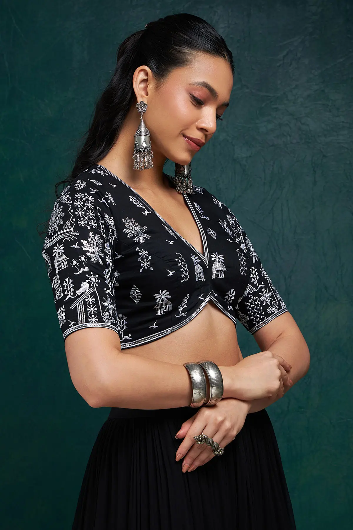 Be the first to review “Black Cotton Ethnic Motifs Blouse”