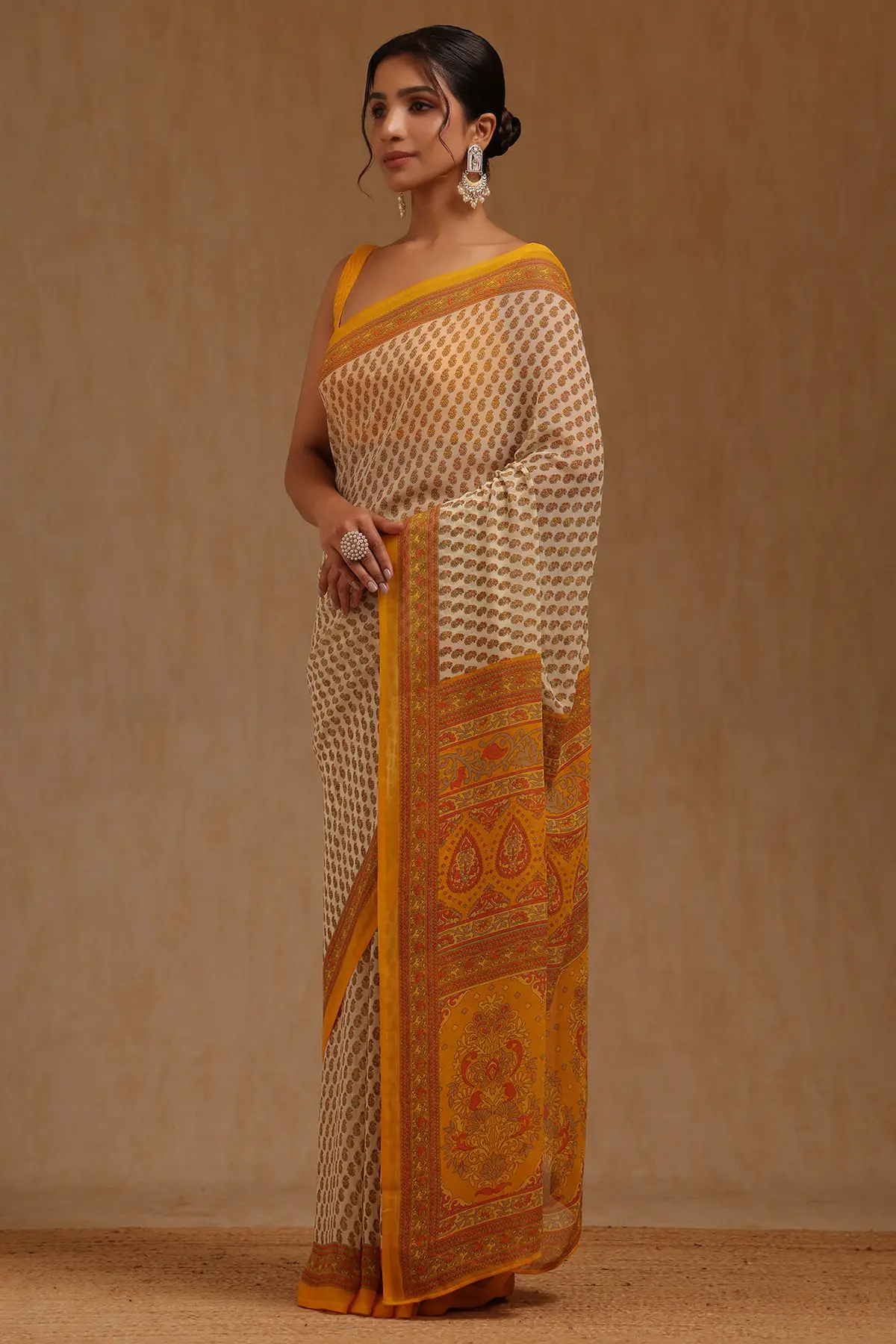 Be the first to review “Yellow Georgette Floral Sarees”